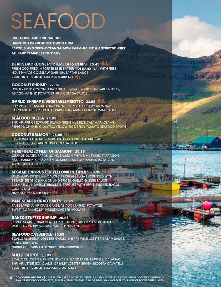 Pasta lovers won't be disappointed either, with options like Mediterranean Vegan Ravioli and creamy Fettuccine Alfredo. Every dish is served in generous portions, ensuring value for every guest.